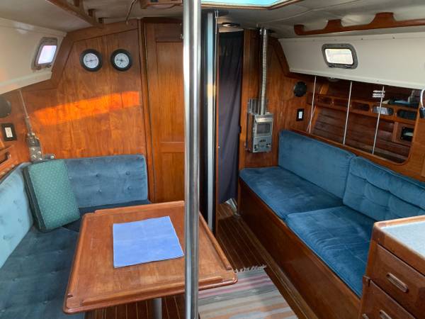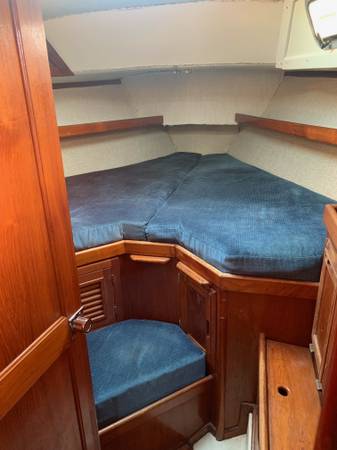 Rebuilt and insulated V-berth area, newly renovated head with composting toilet (some minor work required that I’m currently unable to complete but fully functional) and the toilet faces aft now so you don’t fall off on port tack, leaking windows in cabin sides were repaired properly with new epoxy coated wood and then painted giving Starlight a much brighter interior than other 35/3’s, all windows resealed. All upholstery is clean.