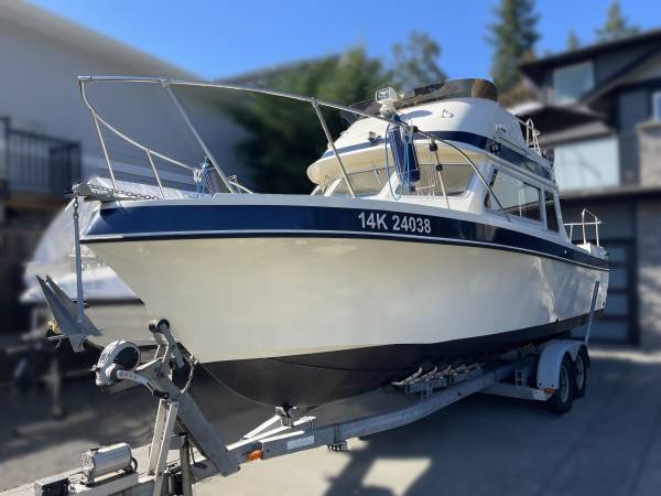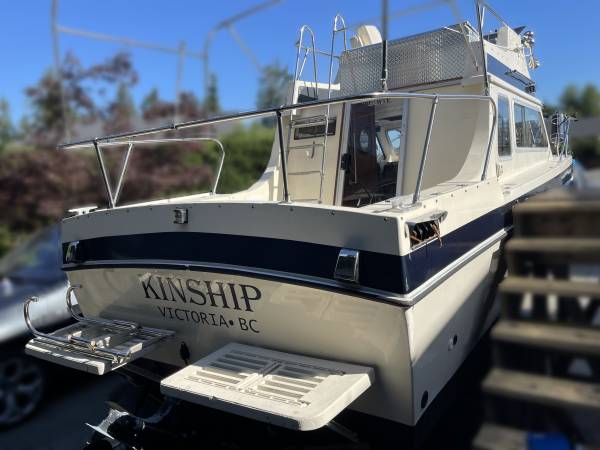 Telestar a rare known boat builder originating from Britian, easily towed by design, large bridge & complete walk around decks. Trailer is a custom dual axel Highliner, electric over hydrolic constructed of galvanized metal perfect for the ocean environment. Equipped with all bumpers, danforth anchor. M.V. Kinship has a 2020 Marine Survey with a clean bill of health, 2 life time rebuilds first recorded in 2003 and the second recorded in 2015.
