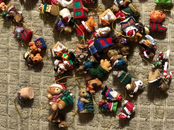 Lot of 70 Plus Miniature Christmas Decorations Plus Metal Storage Container