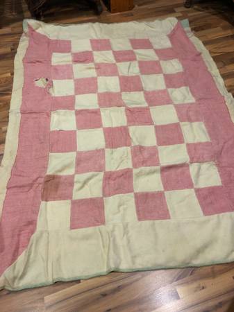 Vtg Hand Made Poor Man's Wool Blanket From Early 1950's 2 Wool Blankets Needing Repair Making 1 Thick Heavy Blanket 54" X 73"
