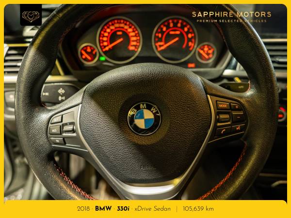 2018 BMW 330i xDrive Sedan — 💎 💰 $24,888 CAD + doc & finance fees ✅ 105,639 km ✅ 2.0L Turbo I4 248hp ✅ All-Wheel Drive ✅ Fuel Economy: 23 City / 33 Highway 📍 Sapphire Motors — 2283 King George...