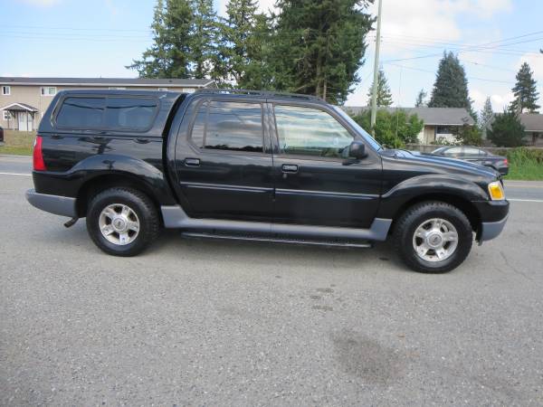 2003 Ford Explorer Sport Trac XLS, 4WD, local BC Truck Clean Title, crew cab, matching canopy, power leather seats, heated seats, sunroof, power lock and windows, only 250k km, truck has service history with paper work, new radiator and valve cover gasket,Fully Inspected By New Car Dealer, full carfax and history available, trades welcome, 4 year or 90000 km warranty available at cost, price plus $175 independent mechanical inspection and $285 doc fee plus tax, same power train as a ford ranger, DL#30547, Stock #MTC48475