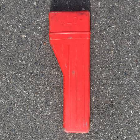 Tripod warning triangle in good used condition. There is some rust on its metal tripod arms with minor transfer to the vinyl warning triangle. Folds/collapses down and stows within red plastic storage case marked ULO and Made In Germany (where all the smart things come from). Has been sitting in storage after selling the Westy years ago (palm to face). Perfect for your Euro period restoration.