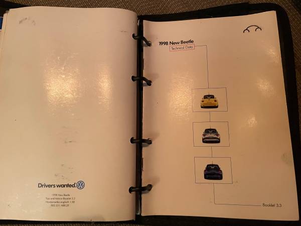 Owner’s manual for 1998 VW New Beetle, excellent condition