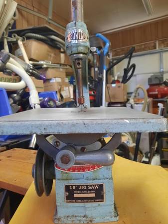Vintage "Sears" jig saw, needs motor but works,ideal for the classic workshop.